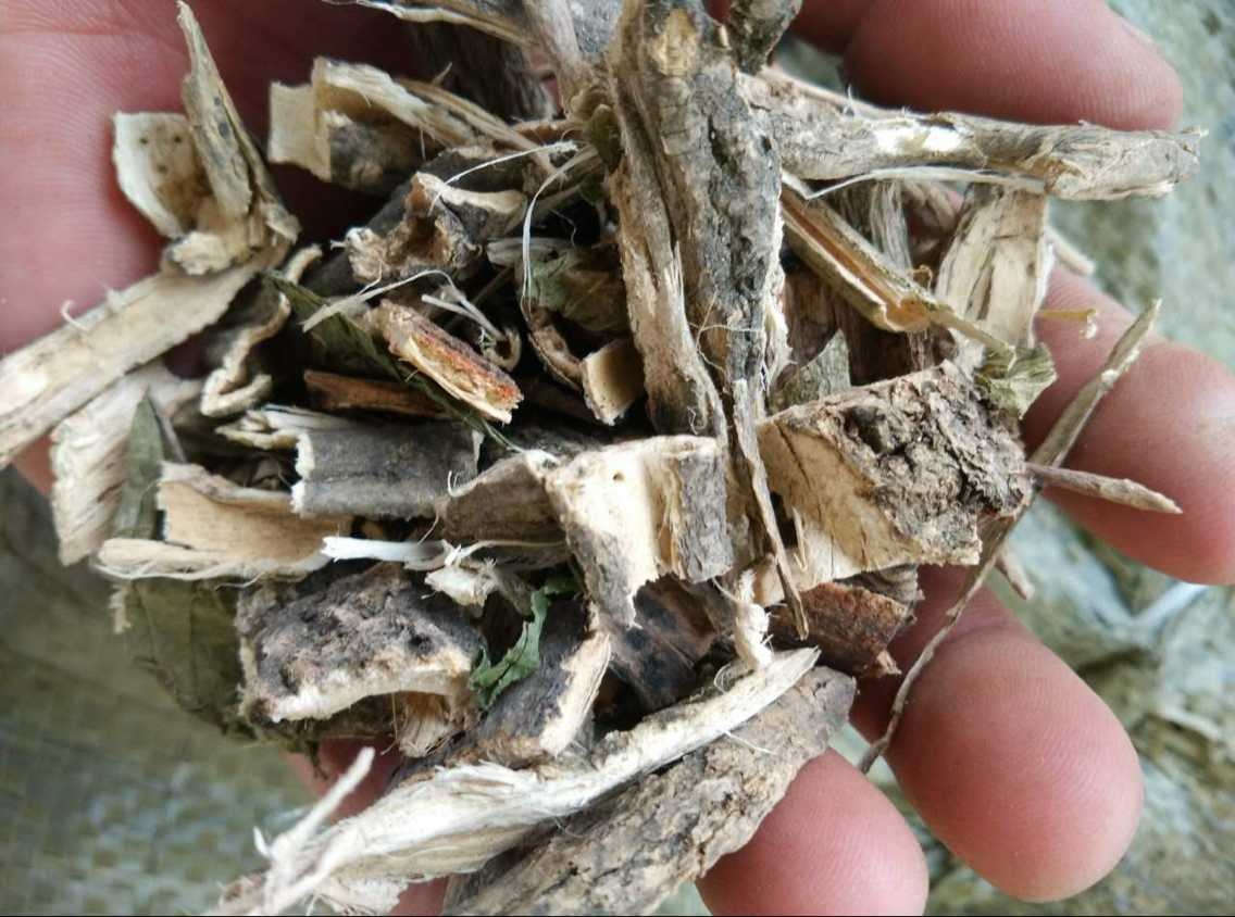 藥材性狀 圓筒狀或半圓筒狀,長15-25cm,寬窄厚薄不一,外皮粗糙,土灰色,有縱向的皺紋和橫向皮孔的小突起,內內表面淡黃綠色。不易折斷,體輕泡。氣微,味淡。